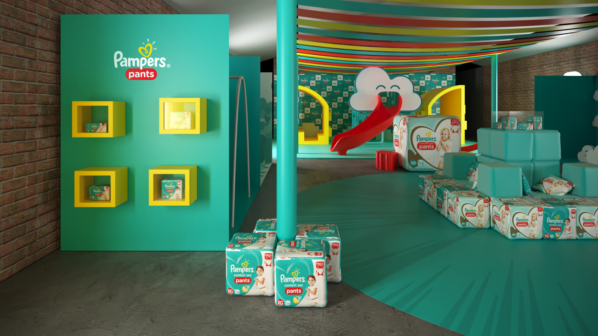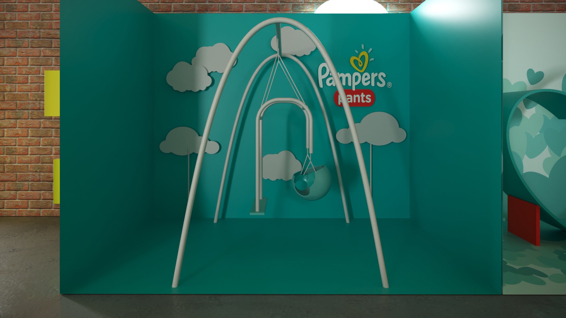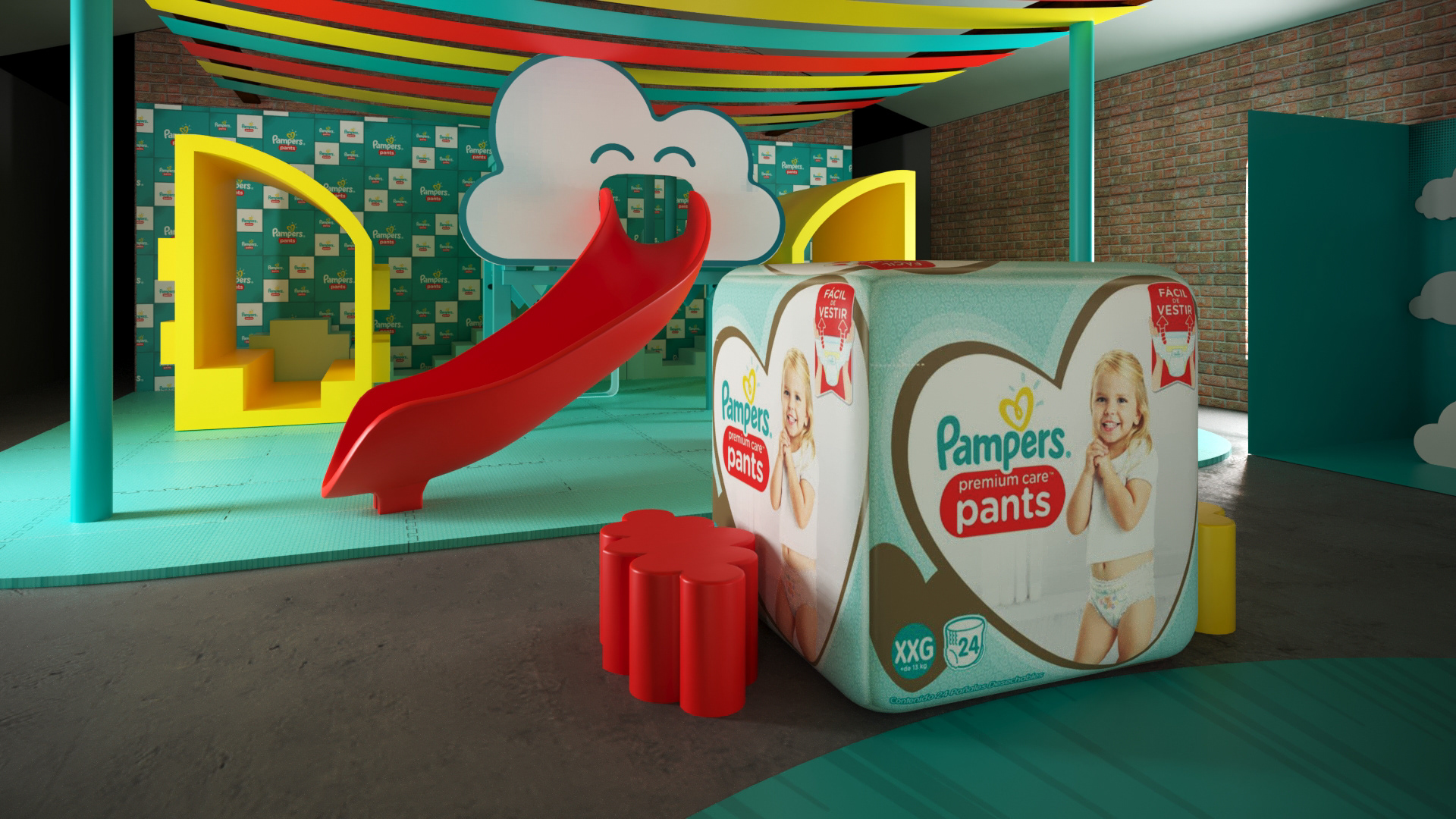 I developed the creative concept, visual identity, and event architecture for the Pampers Pants launch event in Brazil, designed exclusively for Pampers brand influencers.
