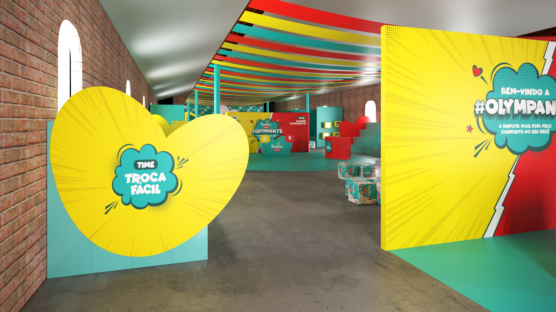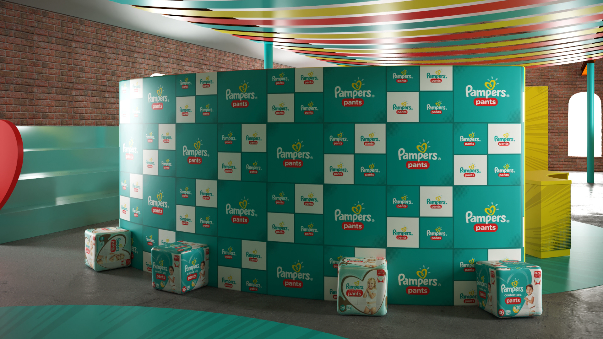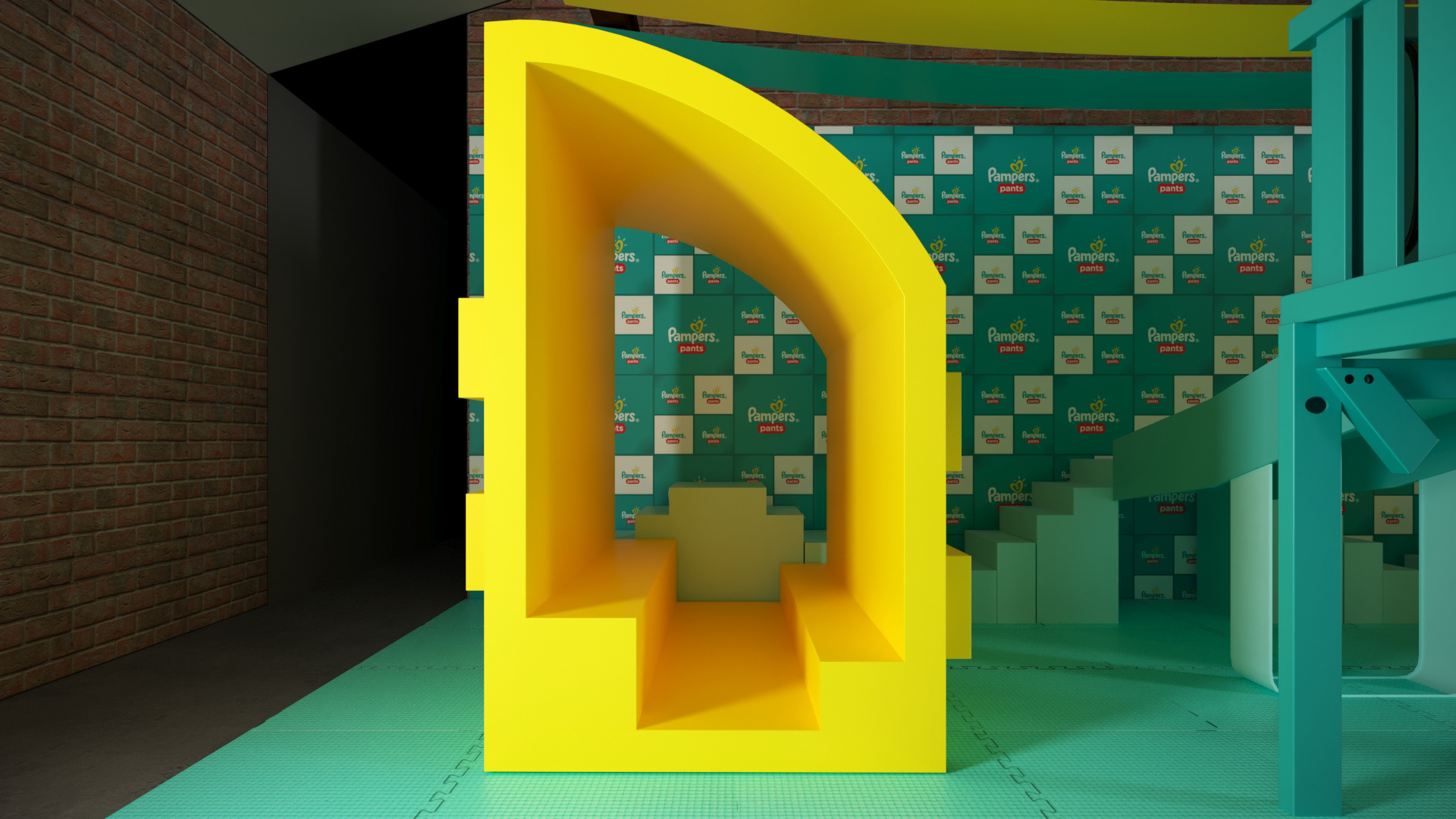 I developed the creative concept, visual identity, and event architecture for the Pampers Pants launch event in Brazil, designed exclusively for Pampers brand influencers.