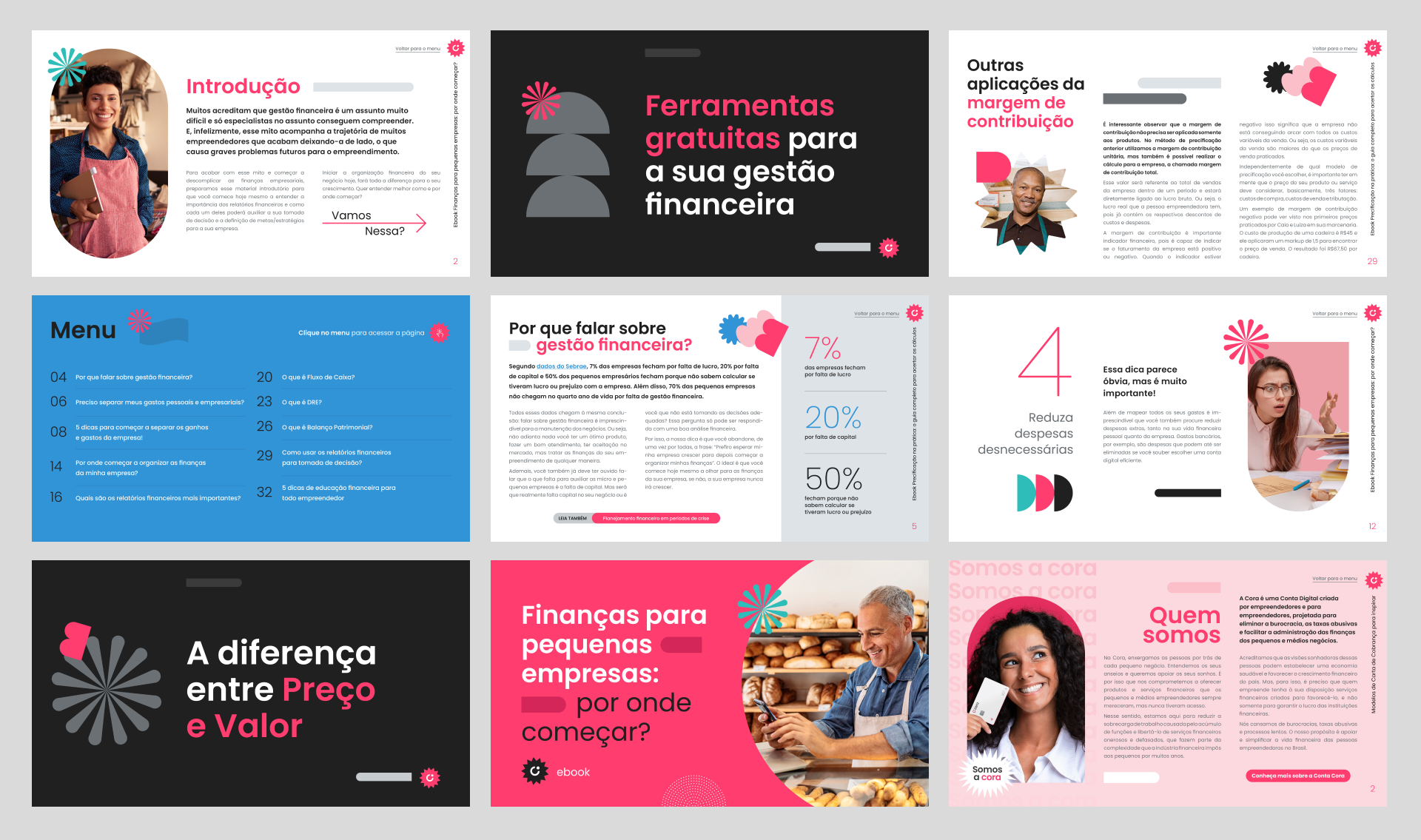Cora Bank invited me to design a series of eBooks focused on financial education, aimed at small and medium-sized business owners.