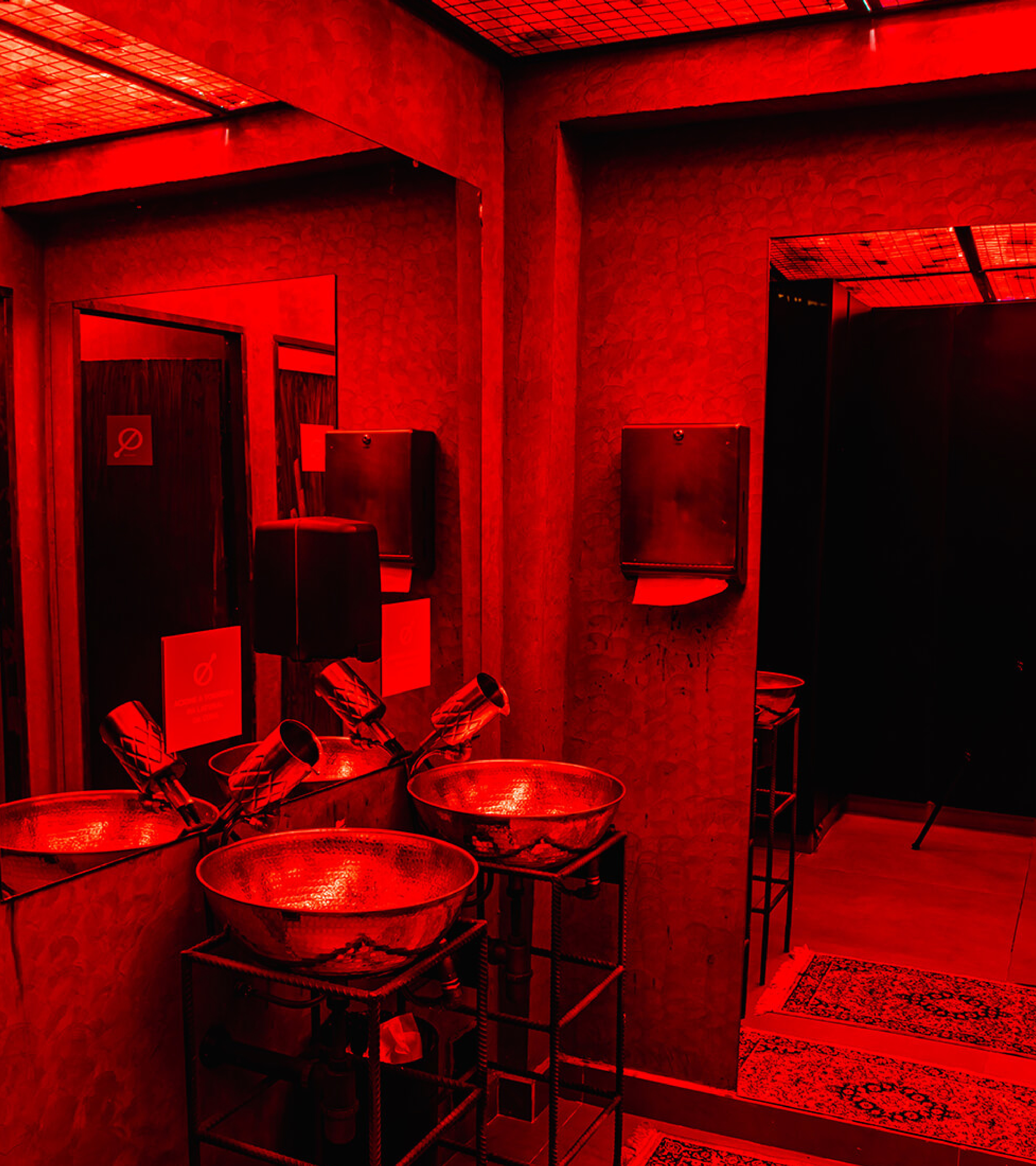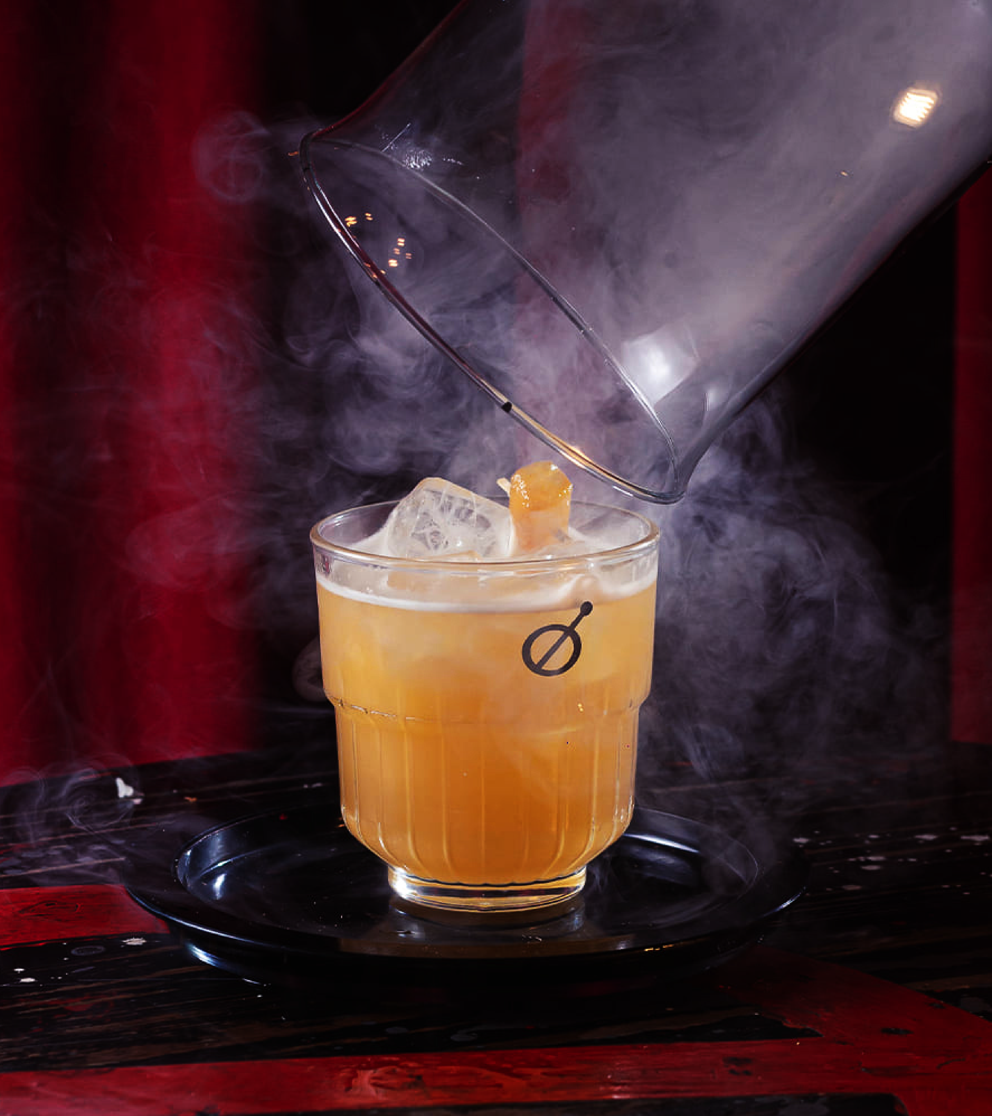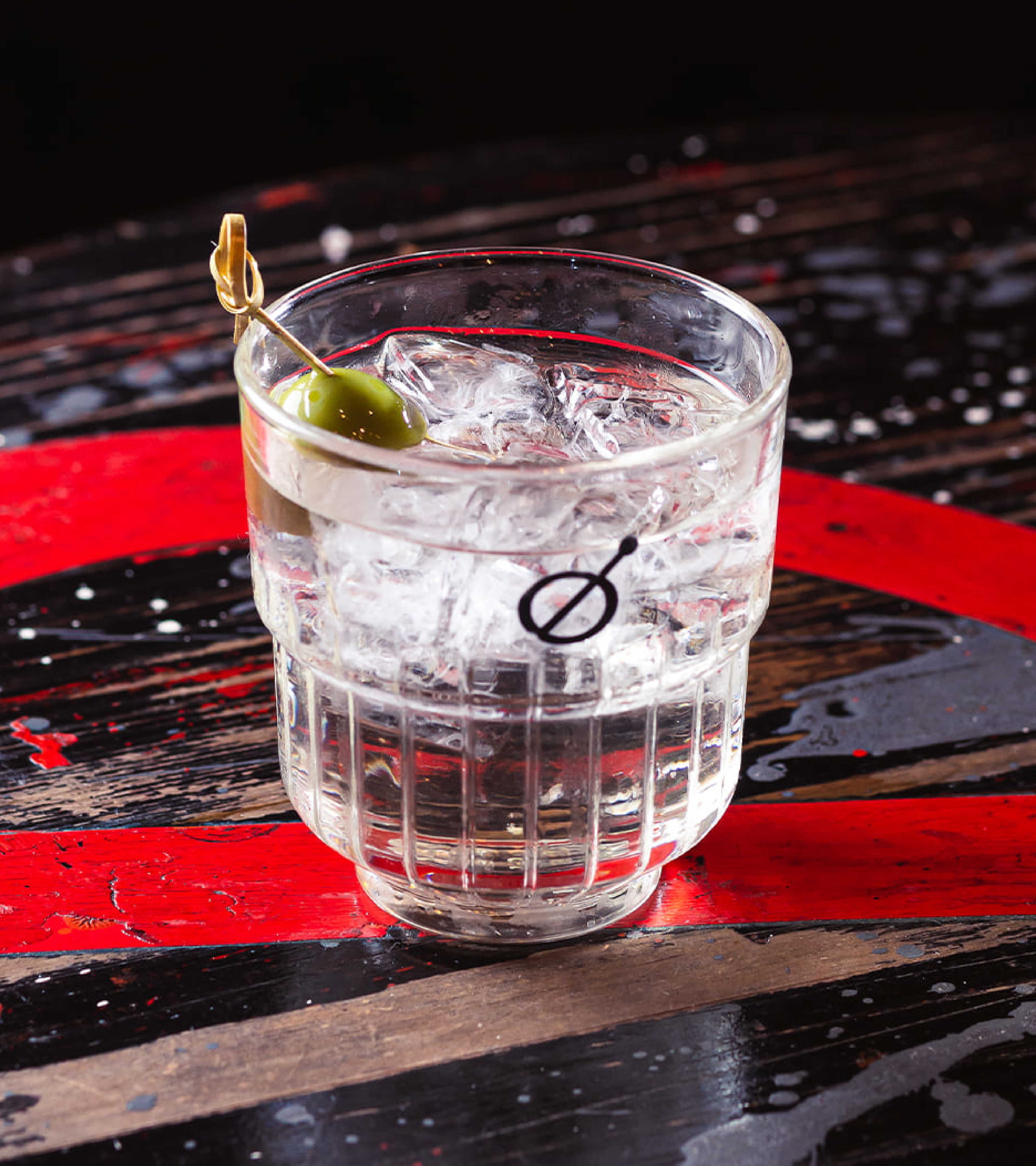 For the symbol, a combination of simple concepts. The drink top, bar spoon, and the prohibition sign convey a protest: here is not a place to talk about work, but to enjoy the moment and have fun.